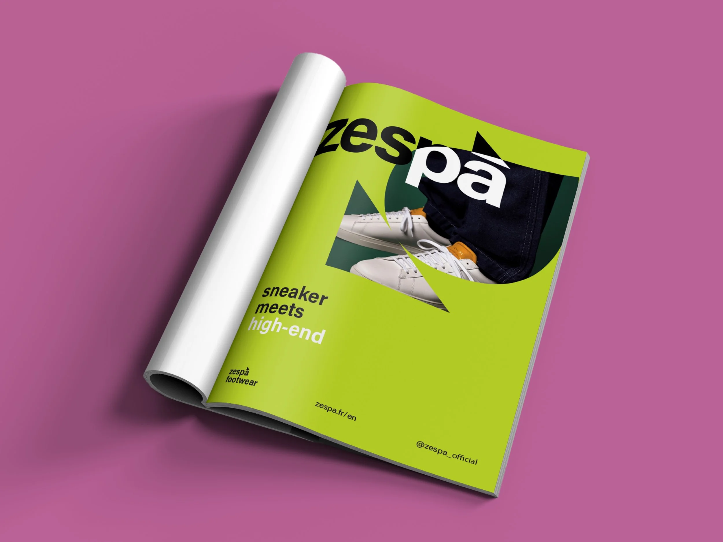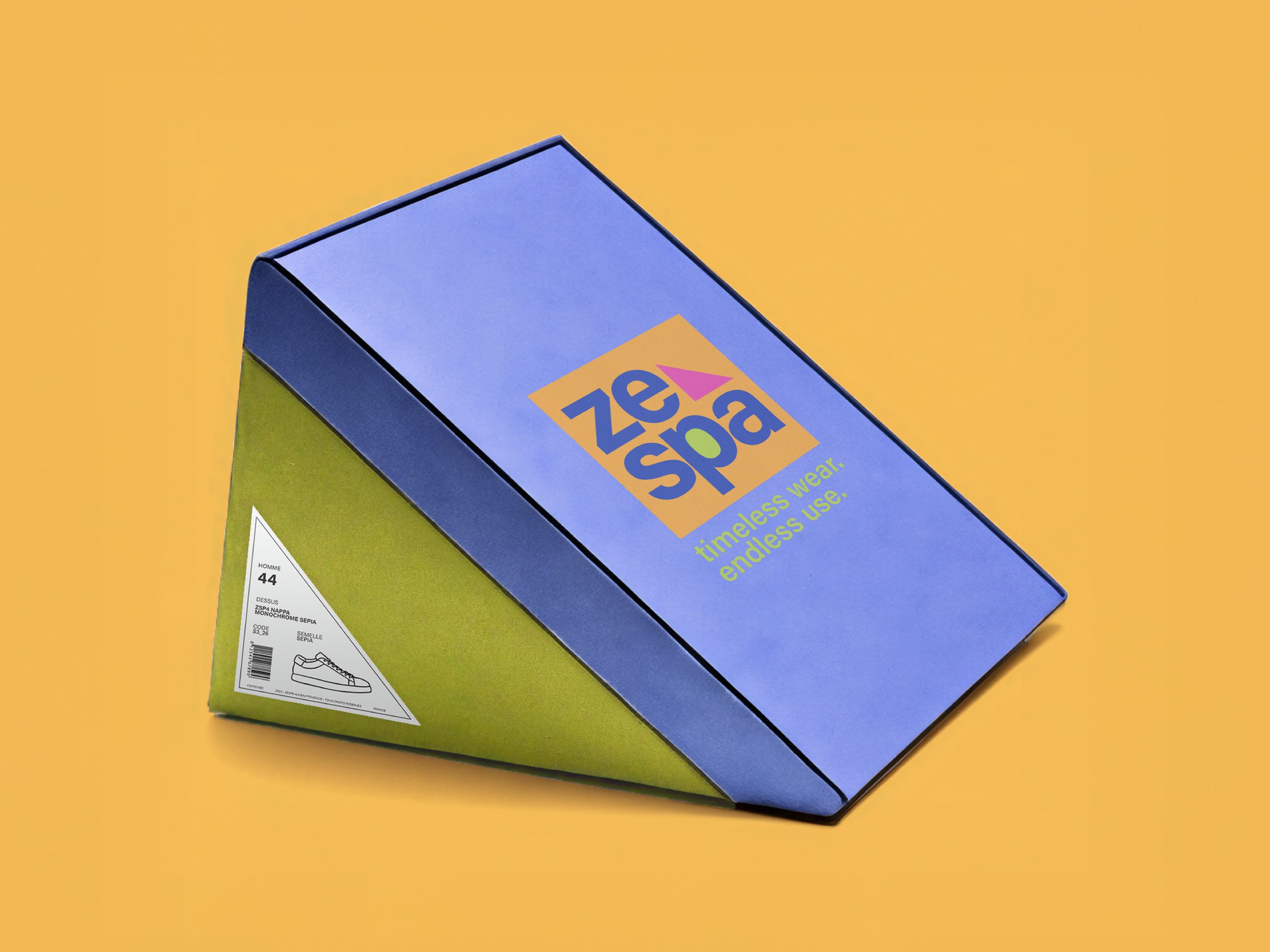 Founded in 2009, Zespà is a European brand transforming the footwear industry with a bold new identity. Drawing inspiration from the vibrant colors and patterns of the South of France, the rebrand highlights geometric shapes, with the triangle as its standout element. Combining modern aesthetics with timeless sophistication, Zespà prioritizes high-quality materials, durability, and chic design in its footwear, trainers, and espadrilles, offering a unique blend of Mediterranean inspired style that’s both elegant and energetic.